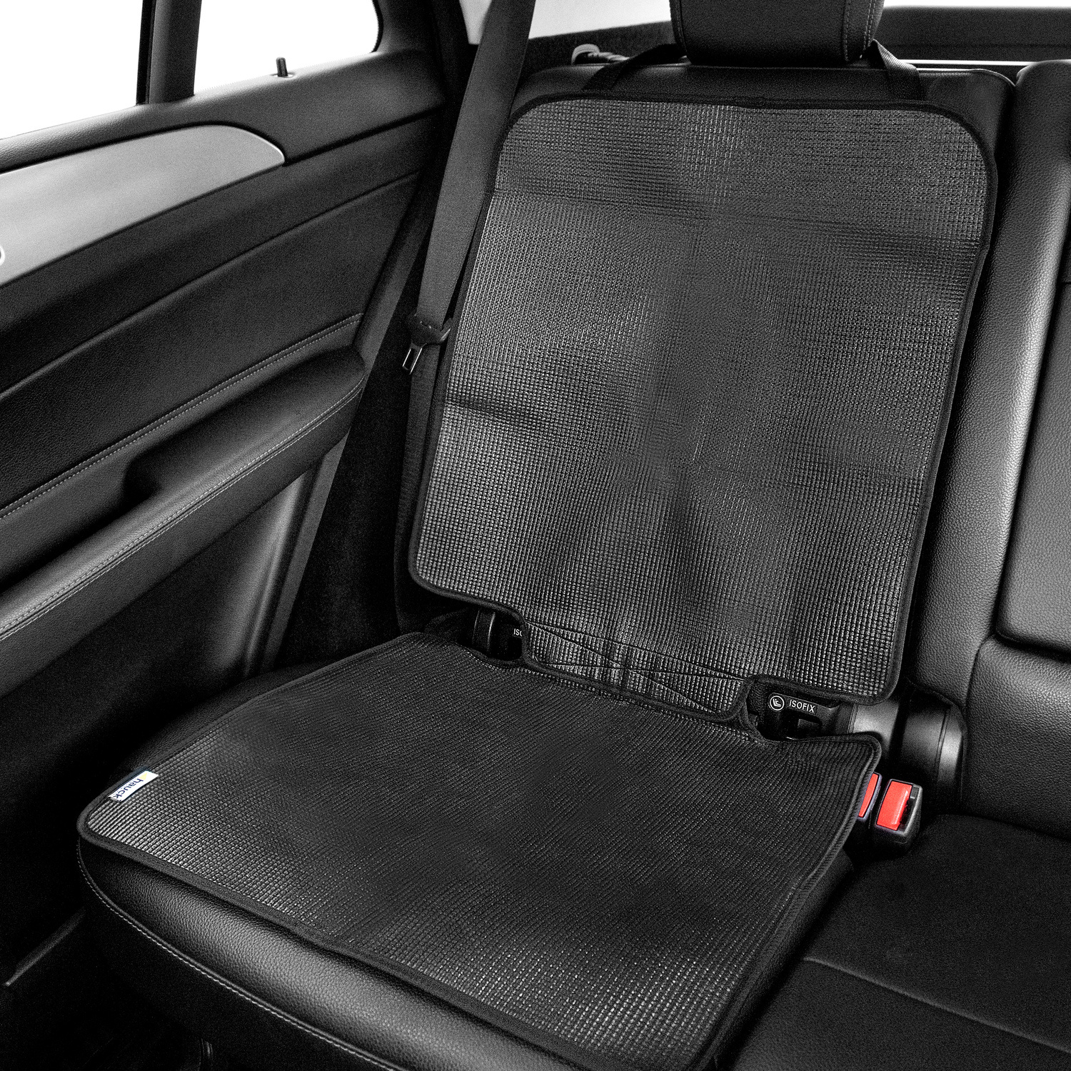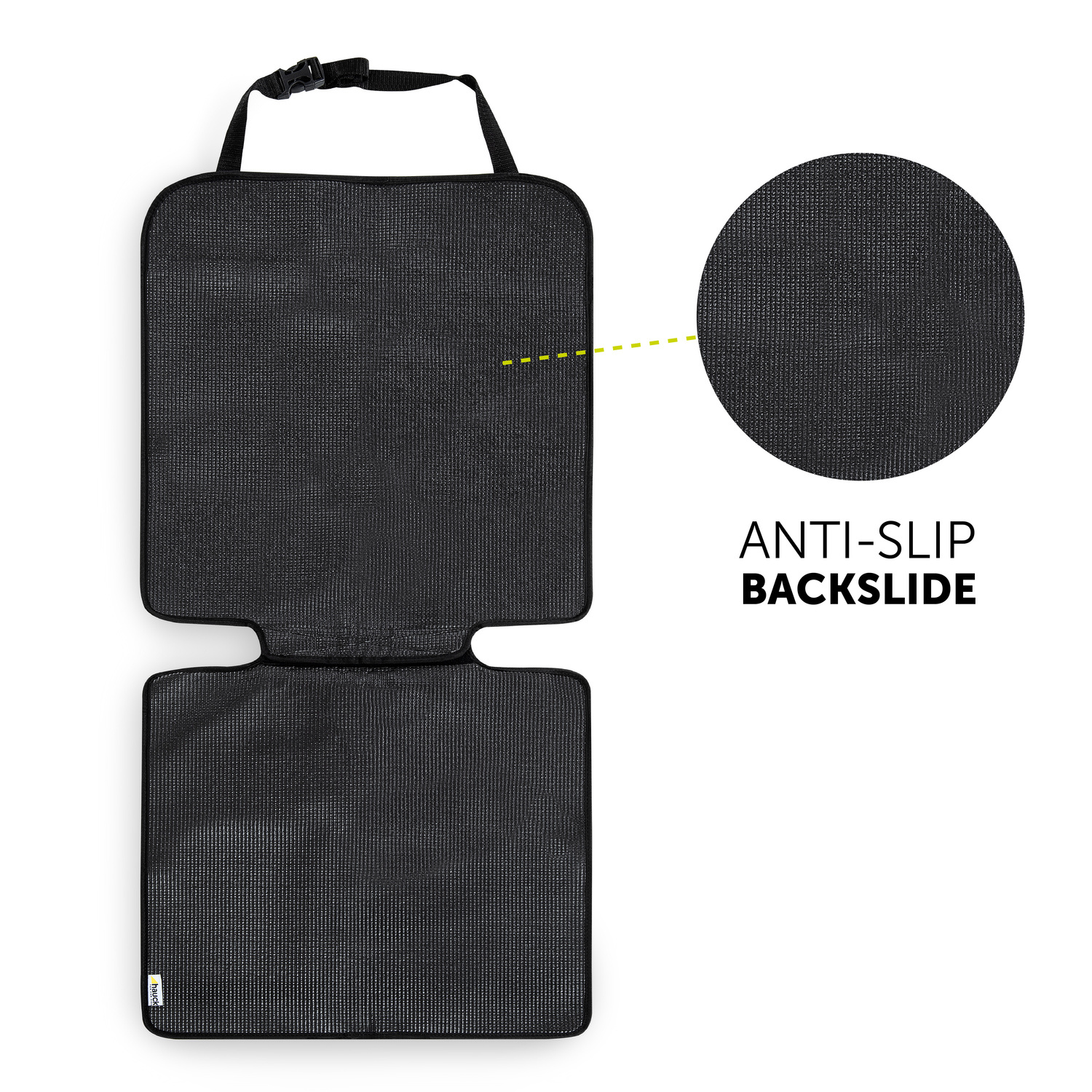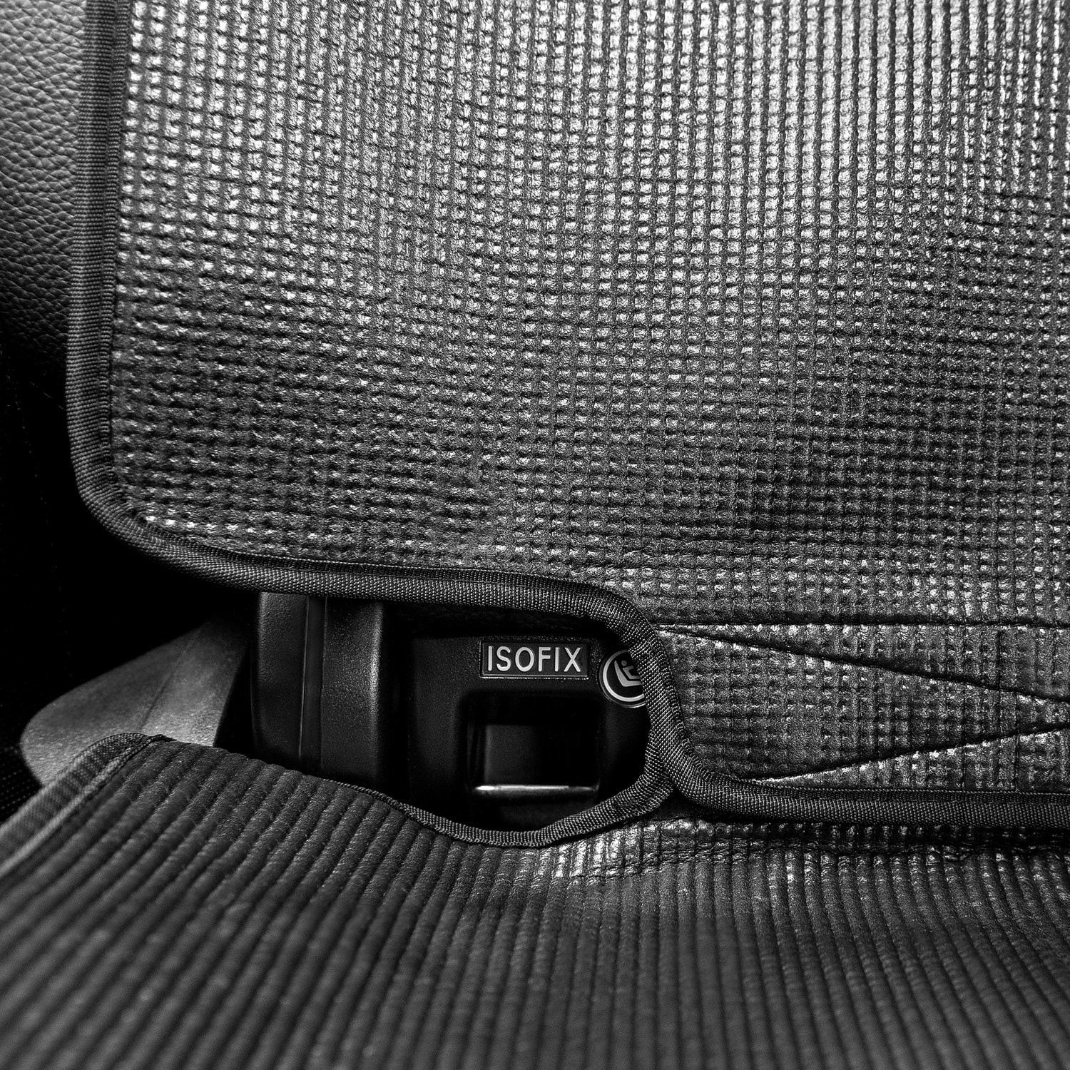 Ochrana potahů autosedadla // Perfektní ochrana potahů autosedadla proti otlačeninám a odřeninám, které způsobují dětské autosedačky. Univerzální podložka má na obou stranách protiskluzový a strukturovaný povrch, který zabrání nechtěným pohybům autosedačky tam a zpět, což zvyšuje stabilitu a bezpečnost. Díky otvorům na Isofix je vhodný do automobilů s přípojkami Isofix.