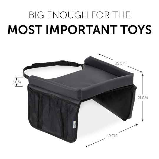 S tímto hracím stolkem se Vaše dítě na cestách rozhodně nebude nudit. Play on Me je vhodný pro všechny dětské sedačky skupiny 1, jednoduše se položí na sedačku a připevní kolem dítěte nastavitelným bezpečnostním pásem. Měkce polstrovaný hrací stolek má vyhrazené místo na bříško a s odkládací plochou ca. 40 x 35 cm je přesně tak velký, aby se na něj bez obav vešly všechny oblíbené hračky. Díky vyvýšenému okraji hračky nespadnou na zem. Na levé straně jsou dvě kapsy na suchý zip, na pravé naleznete dvě síťové kapsy, čímž tento produkt poskytuje dostatek úložného prostoru. Play on Me je omyvatelný, skládací a umožní v nouzových situacích přístup k vašemu potomkovi.