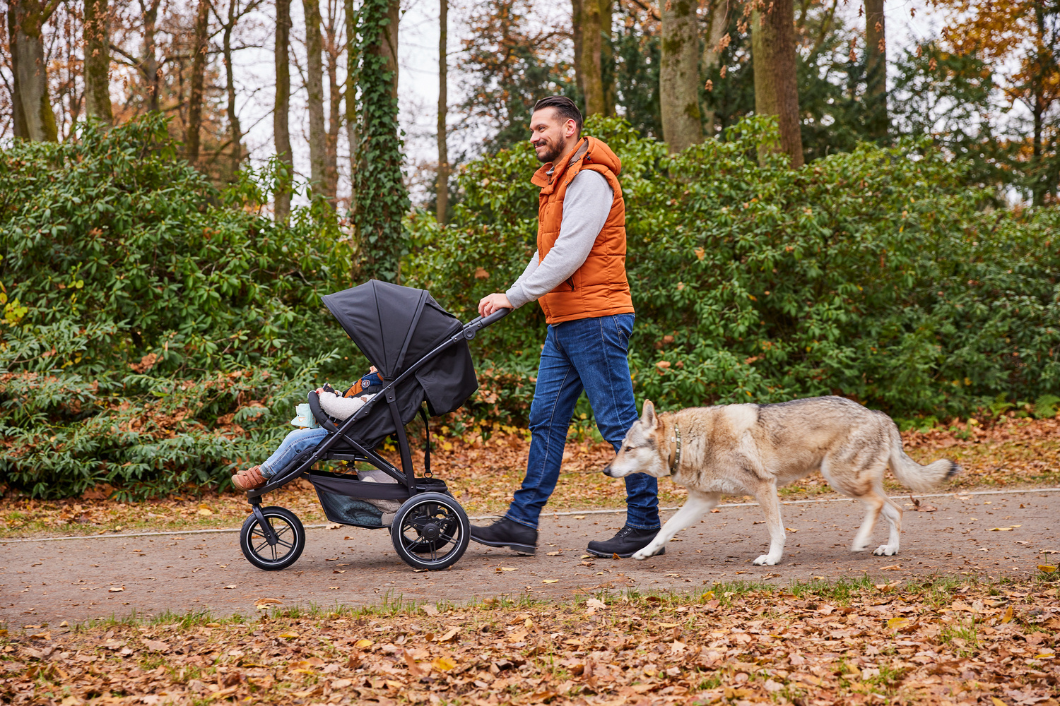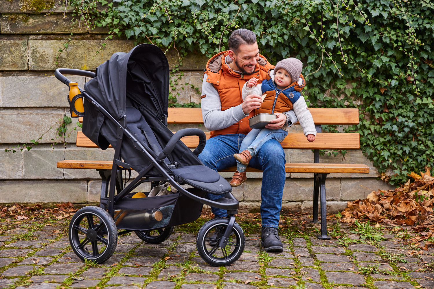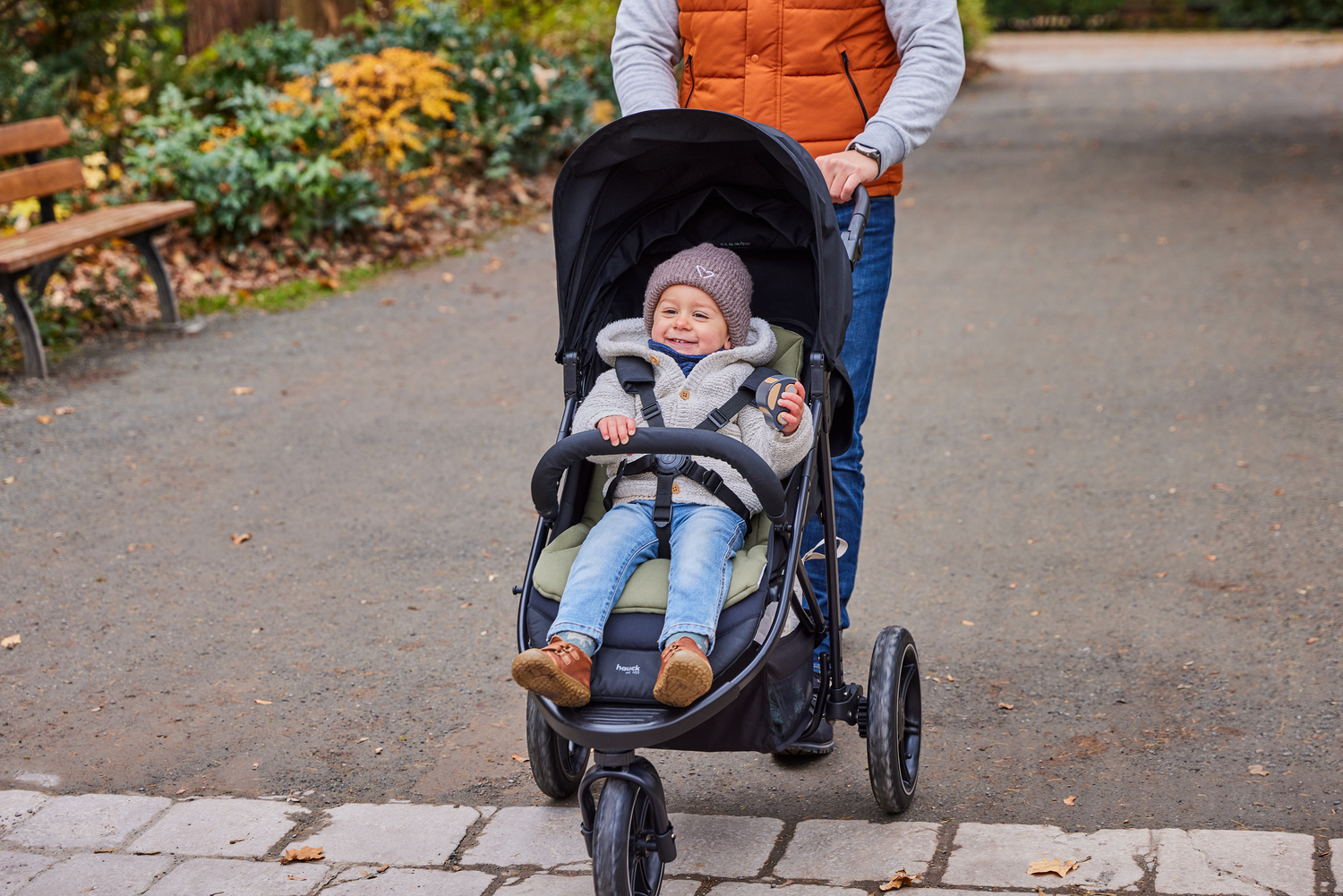 Terénní kočárek // Vhodný do města i do lesa – 3 nafukovací kola se zadním odpružením zajistí pohodlnou jízdu i na nerovném terénu.