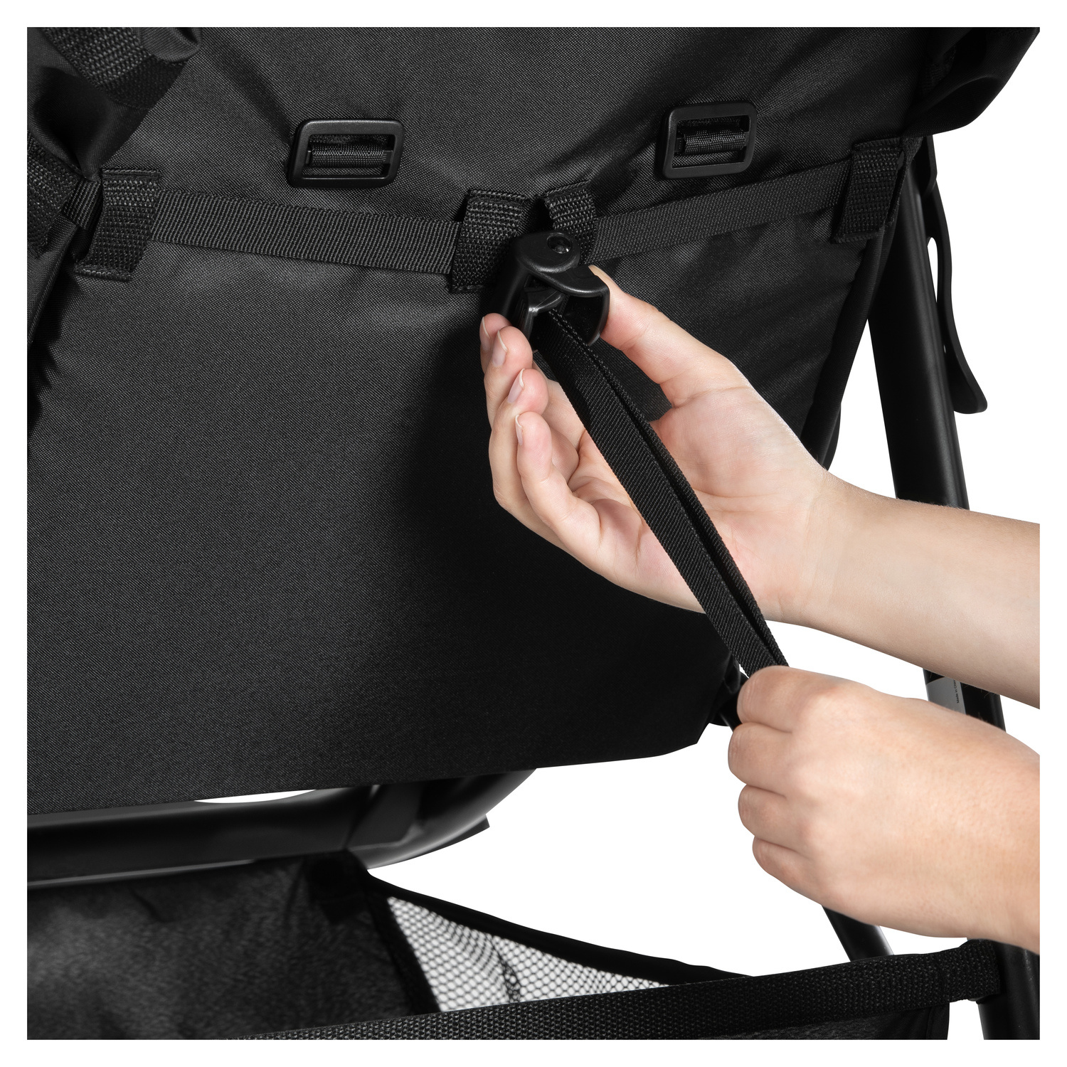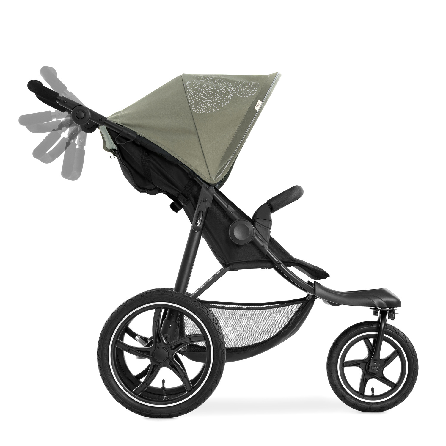 Abyste strávili Váš den komfortně, můžete posouvat polohu rukojeti o 30 cm a nastavit ji tak přiměřeně k Vaší výšce. Bezpečí Vaší ratolesti zajistí 5-bodový pás, brzda a přední madlo, které se při nastupování jednoduše vyklopí do strany.