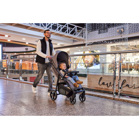 Vyrážíte do města autobusem? Nebo do parku? Kočárek Shop N Care se hodí do každé situace. Díky velkým, otočným, předním kolům s aretací zvládnete svou cestu snadno, kola jsou navíc odolná proti propíchnutí.