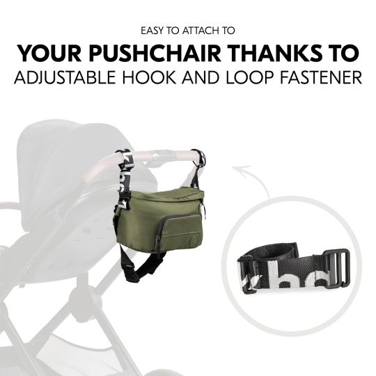 SNADNO & RYCHLE // Organizér velmi snadno a rychle připevníte na kočárek díky nastavitelným suchým zipům. V případě potřeby lze upevňovací pásky odepnout.