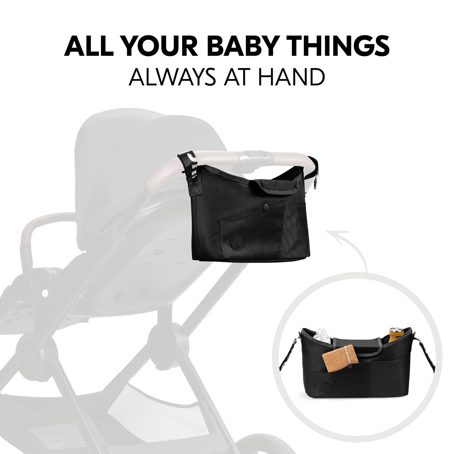 SNADNÉ PŘIPEVNĚNÍ NA KOČÁREK // Organizér snadno a rychle připevníte ke kočárku pomocí nastavitelných suchých zipů.