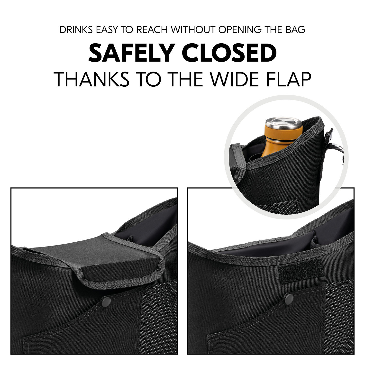 SNADNO PŘÍSTUPNÉ DÍKY PRAKTICKÉMU ZAVÍRÁNÍ // Extra široká, odolná klopa uzavírá a chrání vnitřek organizéru, zatímco boční otvory pro lahvičky zůstávají snadno přístupné.
