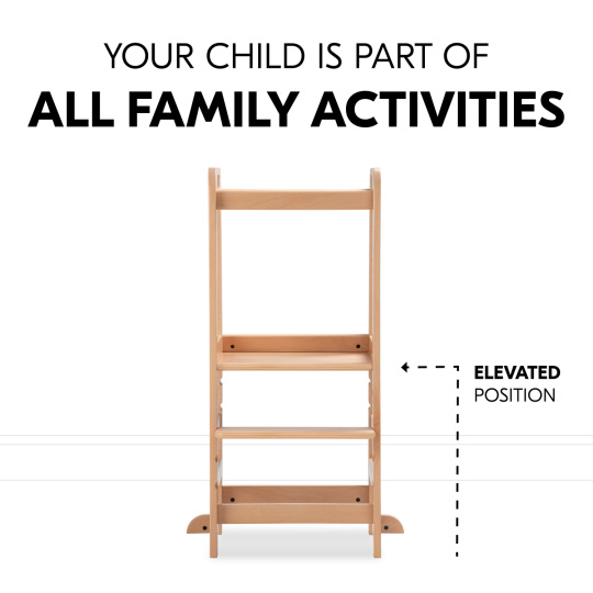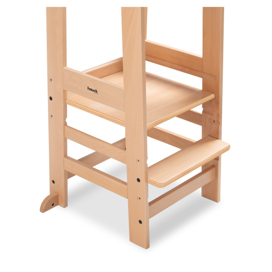 Díky vyvýšené poloze stupínku se může vaše dítě zapojit do běžných rodinných aktivit a pomáhat vám, bezpečně ve výšce očí. V duchu Montessori "Pomoz mi, abych to dokázal sám" se vaše dítě od útlého věku zapojuje formou hry, např. do vaření nebo pečení, a posiluje tak svou samostatnost, jazykový a sociální rozvoj i sebevědomí. Učící Věž pro batolata hauck má certifikát FSC®, což znamená, že bukové dřevo pochází z lesů s certifikátem FSC a šetrným lesním hospodářstvím.