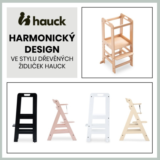 Šrouby a nářadí jsou součástí balení. Plošinu pro nohy lze snadno nastavit pomocí dvou šroubů. Tvar a design dřevěných schůdků je proveden ve stejném vzhledu jako dřevěné židličky hauck, pro váš harmonický interiér.