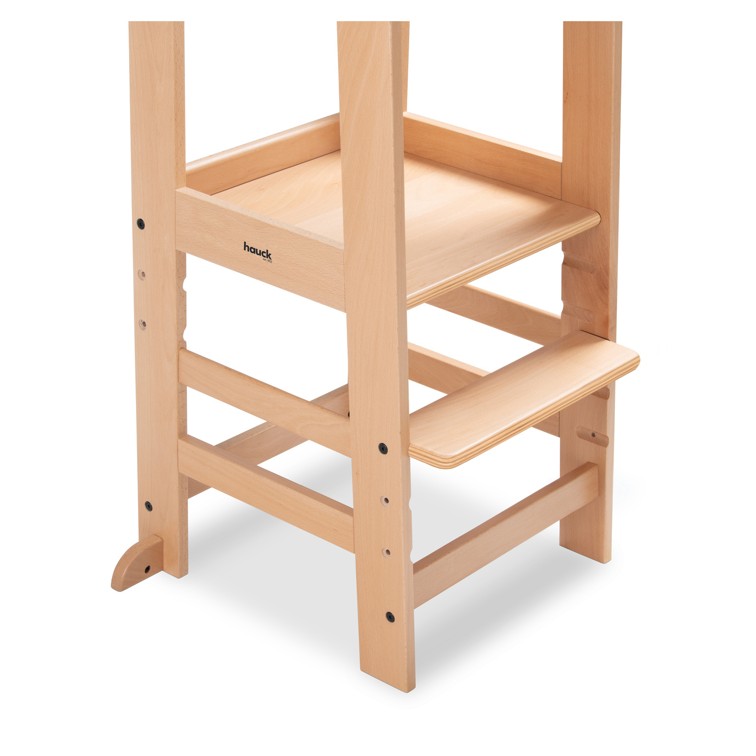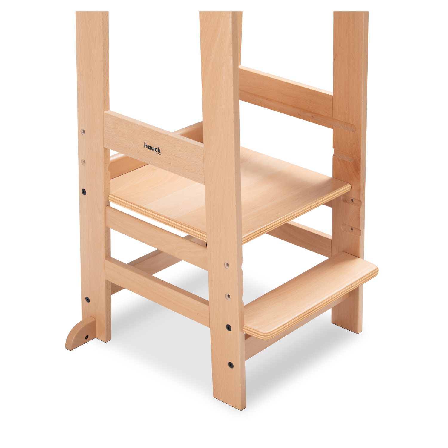 Díky vyvýšené poloze stupínku se může vaše dítě zapojit do běžných rodinných aktivit a pomáhat vám, bezpečně ve výšce očí. V duchu Montessori "Pomoz mi, abych to dokázal sám" se vaše dítě od útlého věku zapojuje formou hry, např. do vaření nebo pečení, a posiluje tak svou samostatnost, jazykový a sociální rozvoj i sebevědomí. Učící Věž pro batolata hauck má certifikát FSC®, což znamená, že bukové dřevo pochází z lesů s certifikátem FSC a šetrným lesním hospodářstvím.