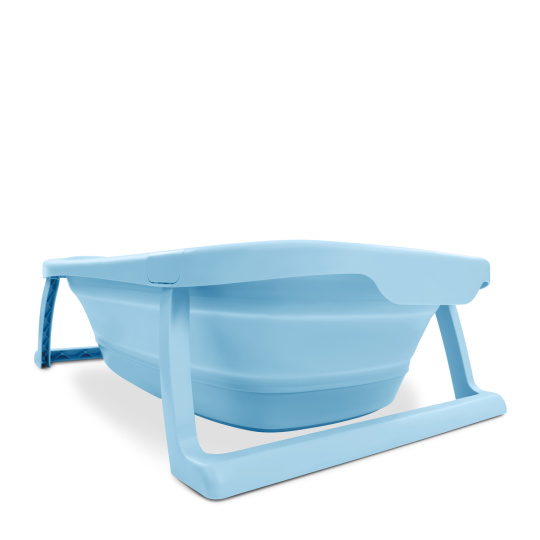 Skládací vanička pojme až 40 l vody a maximální nosnost 30 kg, takže vaše dítě bude mít dostatek prostoru a zároveň můžete ušetřit část vody ve srovnání s používáním běžné vaničky. Měkké a zaoblené části pomáhají udržet vaše dítě v bezpečí, zatímco výklopné nožičky nabízí stabilní polohu na rovném podkladu. A aby bylo vaše dítě v příjemné teplotě kolem 36 stupňů, indikuje špunt zbarvením do bílé příliš vysokou teplotu vody a poskytne vám tak přibližnou informaci.