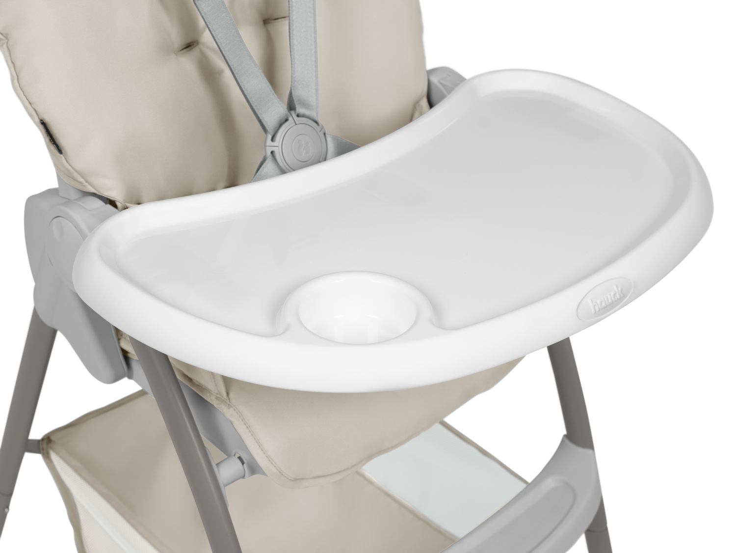 Od hradní k papání: na extra velký tác se pohodlně vejde vše. Hloubkově nastavitelný, odnímatelný, s integrovaným držákem na pití – to je praktický podnos. A navíc se snadno a rychle otírá.