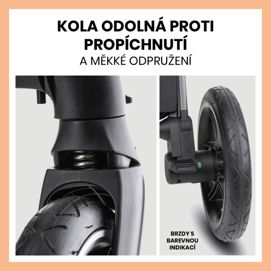 KOLA ODOLNÁ PROTI PROPÍCHNUTÍ A OBZVLÁŠTĚ MĚKKÉ ODPRUŽENÍ // Do města či do přírody: s robustním hliníkovým rámem, velkými GUMOVÝMI koly odolnými proti propíchnutí a odpružením 4x4, jste dobře vybaveni do každého terénu. Ještě větší pohodlí a bezpečnost vám nabízí brzdový systém s barevným indikátorem.