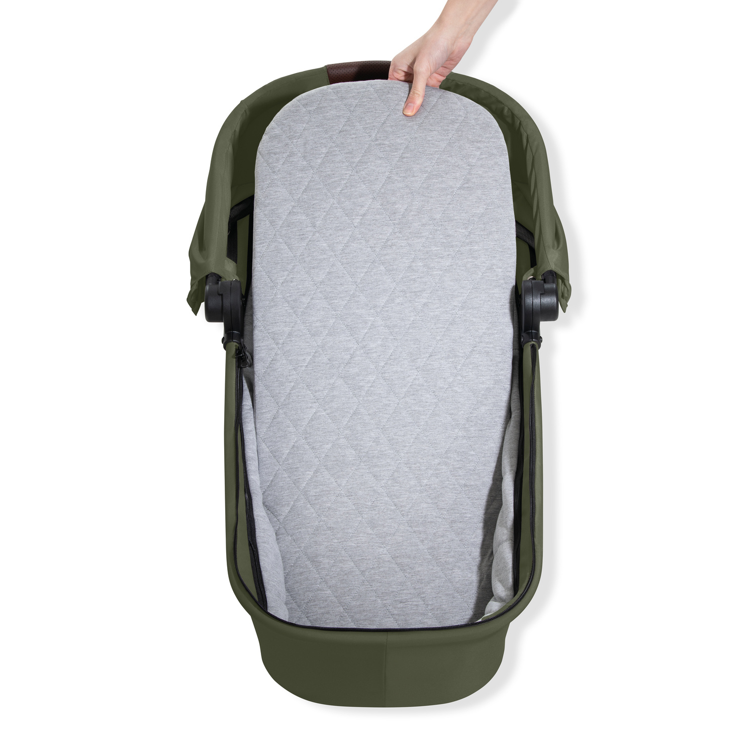 PROSTORNÁ A POHODLNÁ KORBIČKA PRO KAŽODENNÍ PROCHÁZKY JAKO V BAVLNCE // Díky bavlněné podšívce a matraci s letní a zimní stranou se bude vaše maličké cítit jako v bavlnce po celý rok. Díky systému paměťových tlačítek odpojíte korbičku z konstrukce snadno a rychle jednou rukou.