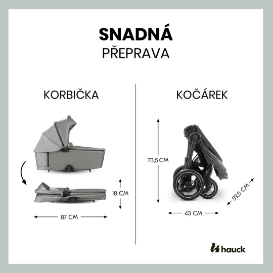 SNADNÁ PŘEPRAVA // Ať už se jedná o výlet do města nebo návštěvu prarodičů, kočárek i korbička jsou ve složeném stavu velmi kompaktní - a složený kočárek s přepravním zámkem je dokonce po složení samostatně stojící!