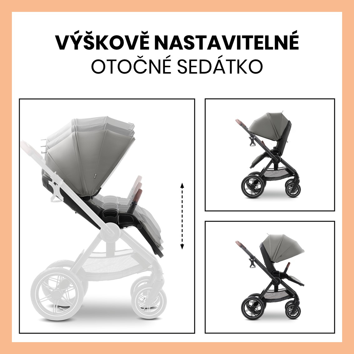 POHODLNÉ SEDÁTKO SE DVĚMA SMĚRY POHLEDU // Na zmrzlinu, na kávu či do parku: všude se vám kočárek dokonale přizpůsobí díky výškově nastavitelnému otočnému sedátku, navíc s extra dlouhým sezením a polohováním poskytuje maximální pohodlí v každé situaci.