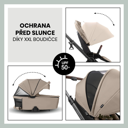 XL STŘÍŠKA PRO MAXIMÁLNÍ OCHRANU PŘED SLUNCEM // Sedátko i korbička mají prodloužitelnou sluneční stříšku s ochranou proti UV záření 50+ a velká síťovaná okénka. Díky tomu je vaše děťátko optimálně chráněno, a přitom má neustálý přísun čerstvého vzduchu.