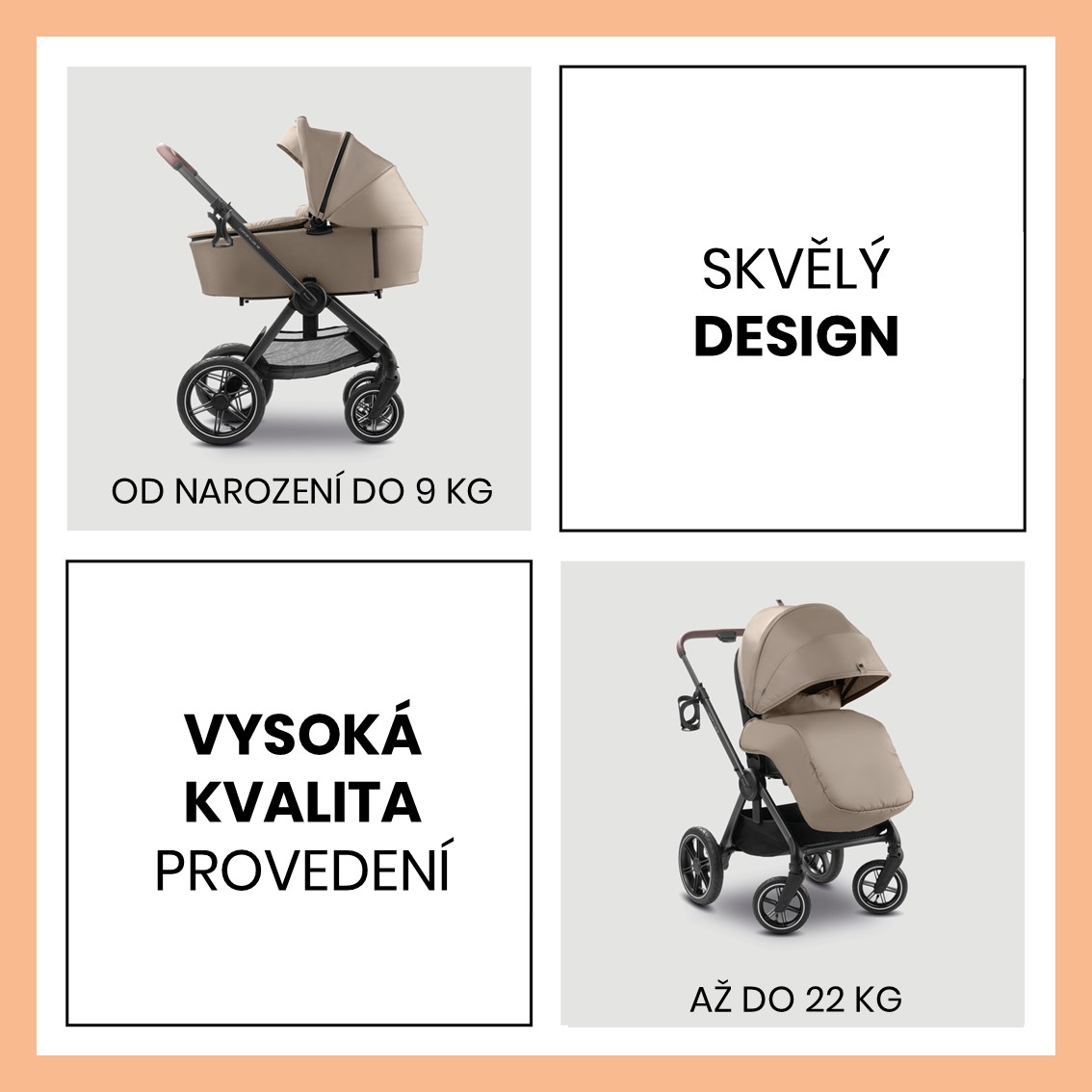 KVALITNÍ PROVEDENÍ A PRÉMIOVÝ DESIGN // Za sadou COMFORT N CARE se určitě otočíte díky kvalitnímu provedení a prémiovému designu. Kombinovaný kočárek je vhodný pro děti od narození do 22 kg.