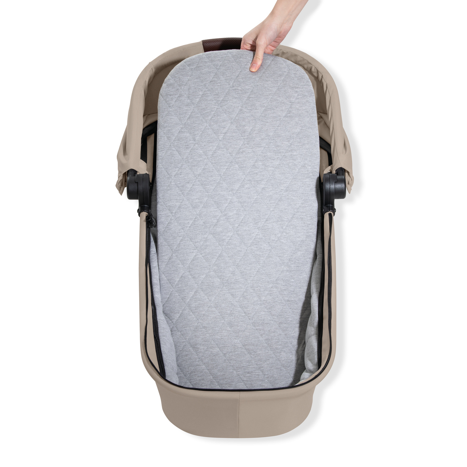 PROSTORNÁ A POHODLNÁ KORBIČKA PRO KAŽODENNÍ PROCHÁZKY JAKO V BAVLNCE // Díky bavlněné podšívce a matraci s letní a zimní stranou se bude vaše maličké cítit jako v bavlnce po celý rok. Díky systému paměťových tlačítek odpojíte korbičku z konstrukce snadno jednou rukou.