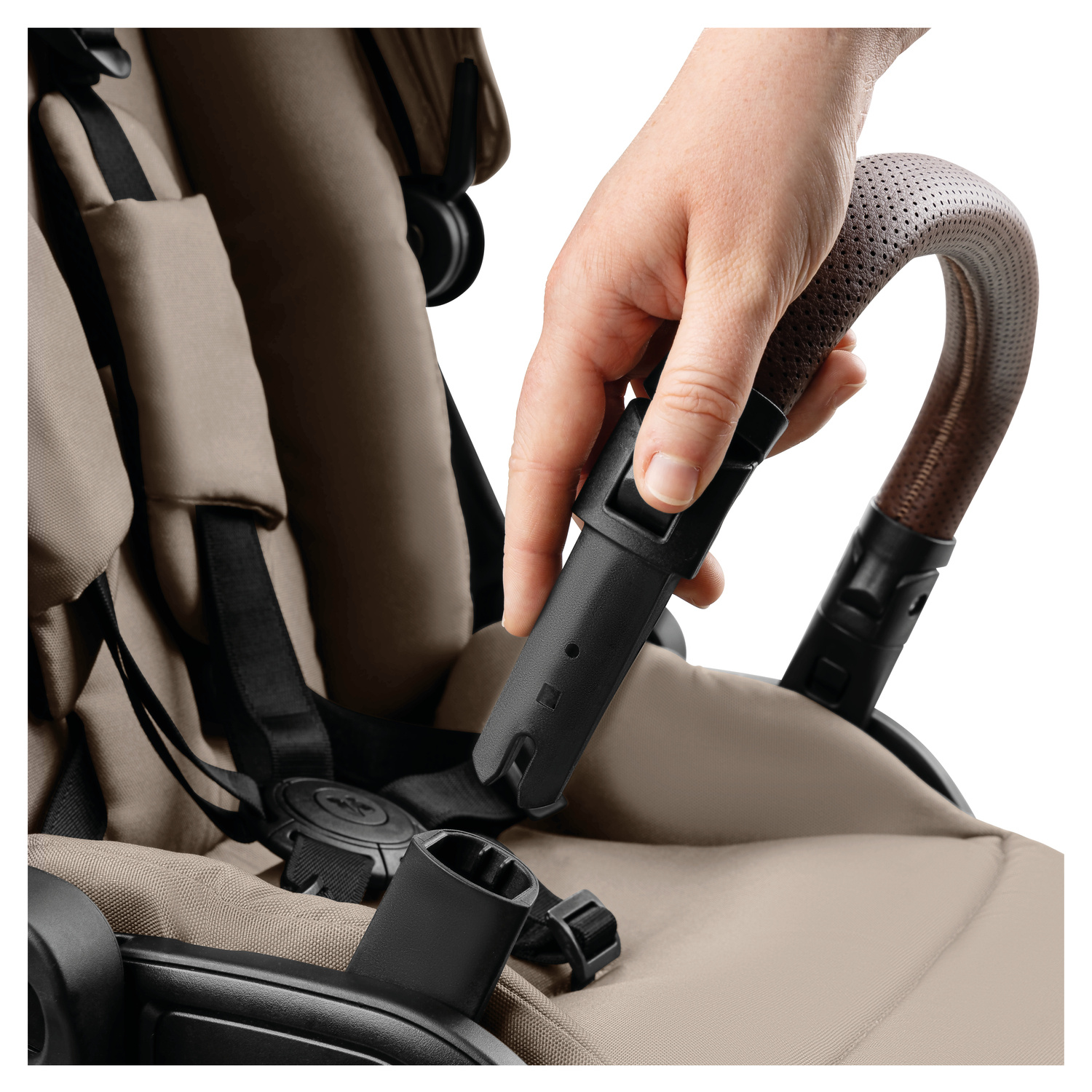 VŠE S SEBOU - A PO RUCE // Díky praktickému držáku na nápoje na výškově nastavitelné teleskopické rukojeti máte svůj nápoj vždy po ruce. Vše, co vy a vaše maličké budete potřebovat, se vejde do extra velkého výklopného koše!