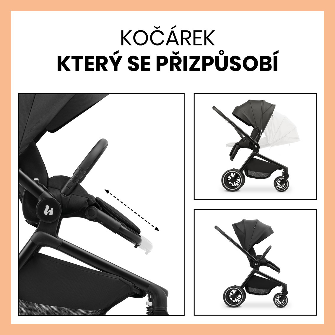 KOČÁREK, KTERÝ SE PŘIZPŮSOBÍ S DVĚMA VÝHLEDY // Otočné sedátko s prodlužovací opěrkou nožiček, extra-dlouhé sedátko a polohovací opěrka zad jednou rukou, výškově nastavitelný 5 bodový bezpečnostní pás se perfektně přizpůsobí vašemu dítěti.