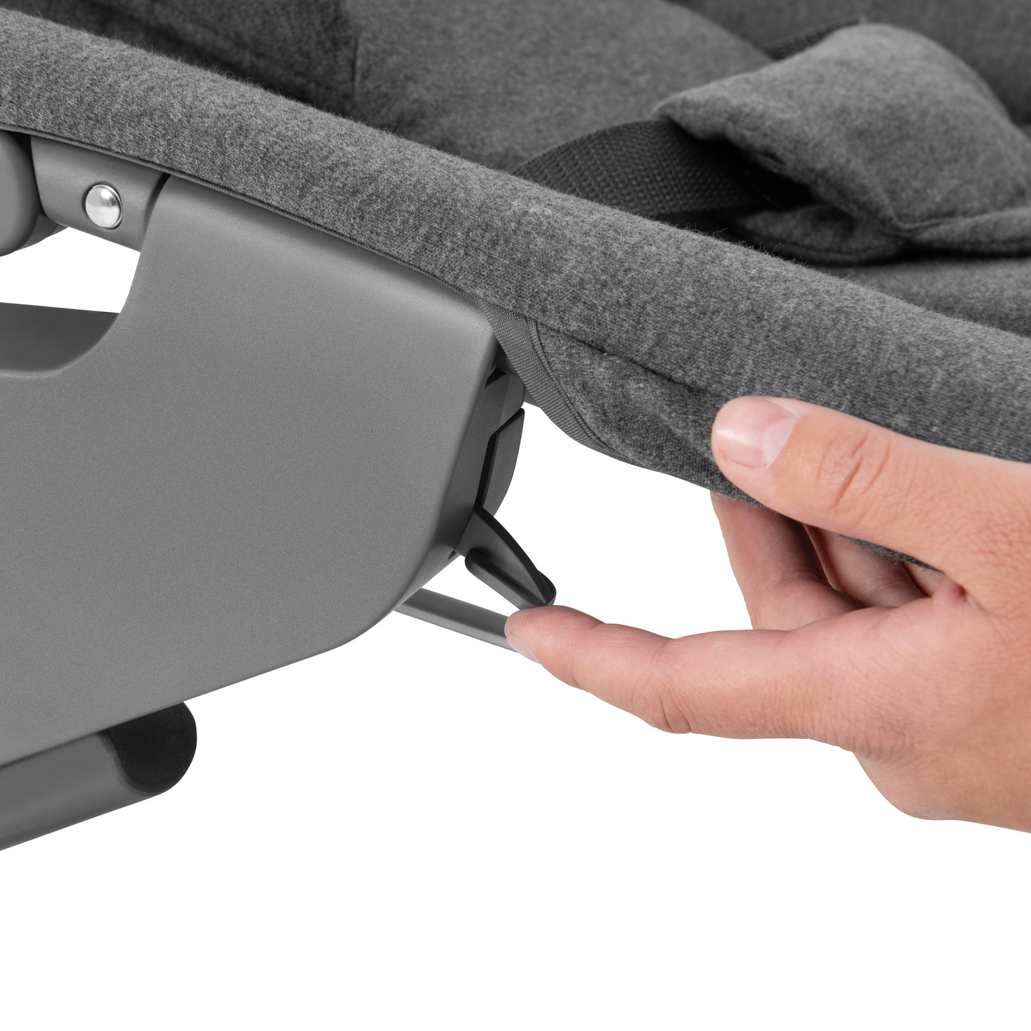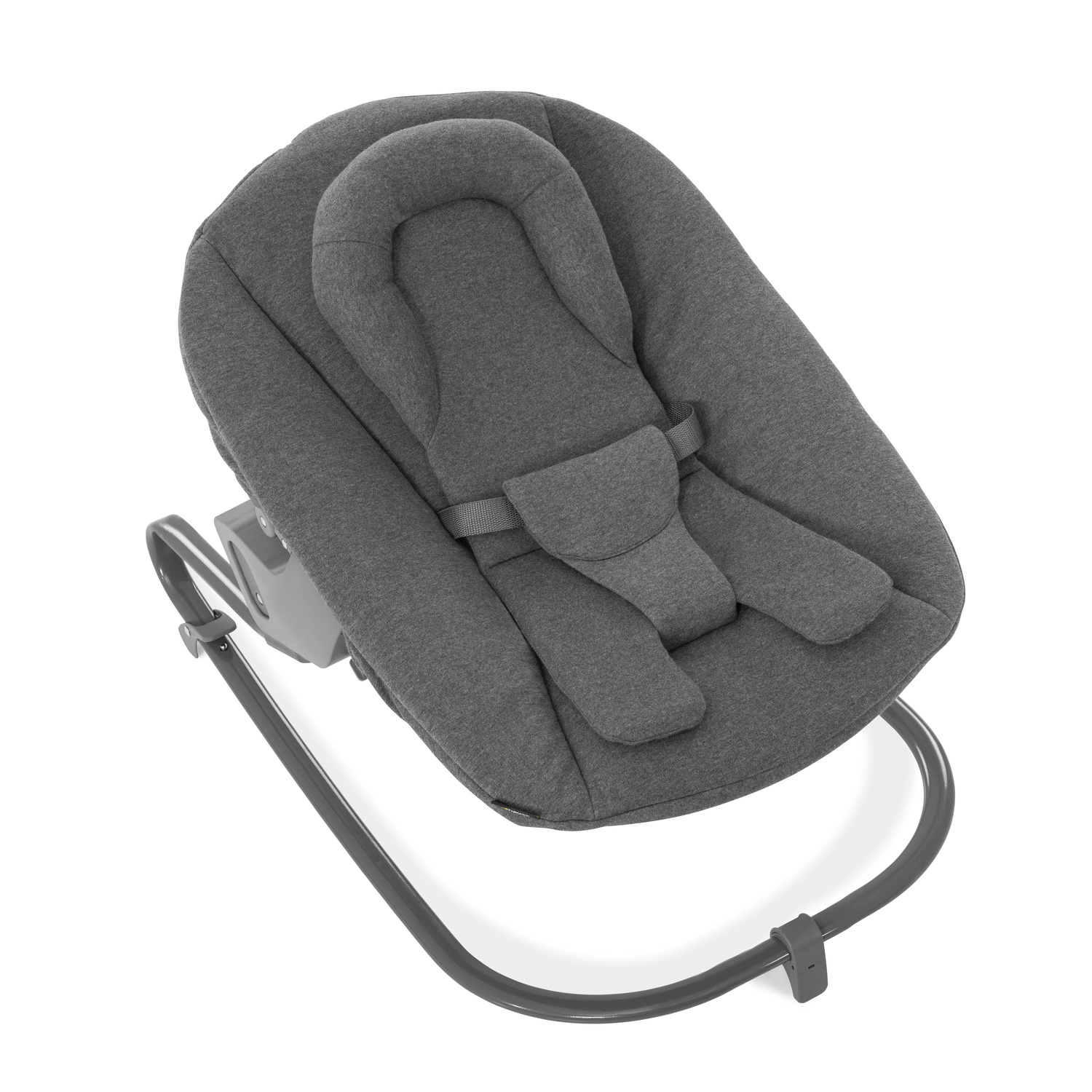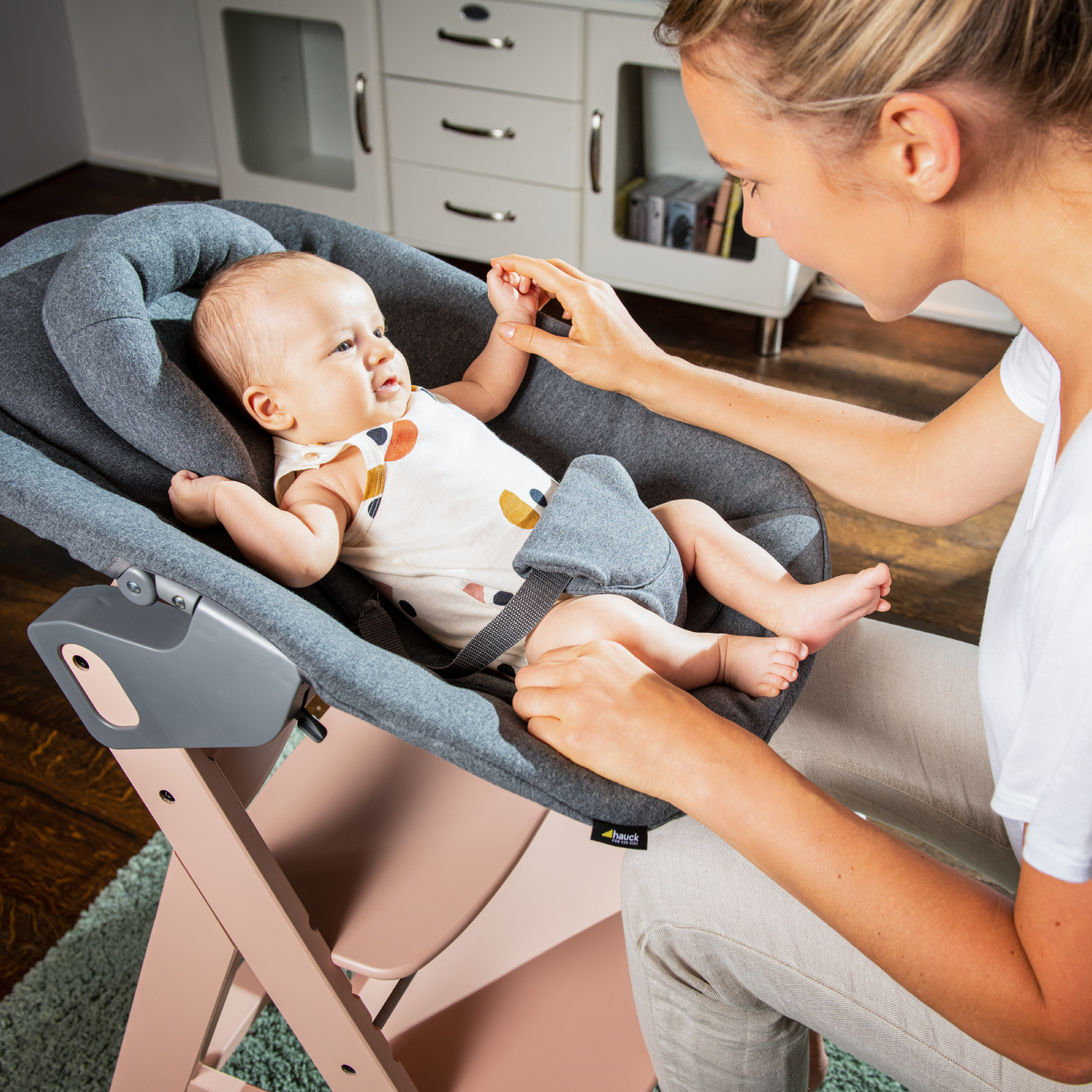 Pro novorozence použijte měkké vnitřní přídavné polstrování sedátka se zesílenou opěrkou hlavy. Polstrovaný 3-bodový pás miminko dokonale zabezpečí. Pokud si děťátko žádá změnu, lze nástavec pro novorozence jednoduše upevnit na houpací stojan a rázem se pomocí několika tahů vykouzlí prémiová kolébka, která se může buď houpat spolu s přirozenými pohyby miminka, nebo se jednoduše zajistí.