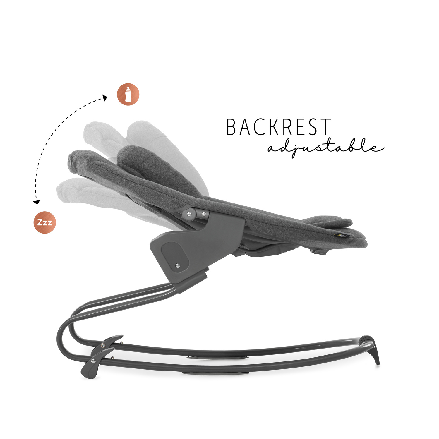 Nastavitelná zádová opěrka // Pro krmení lze opěrku zad nastavit do vzpřímené polohy, při odpočinku a hraní se zase lehce sklopí do polohy vleže.