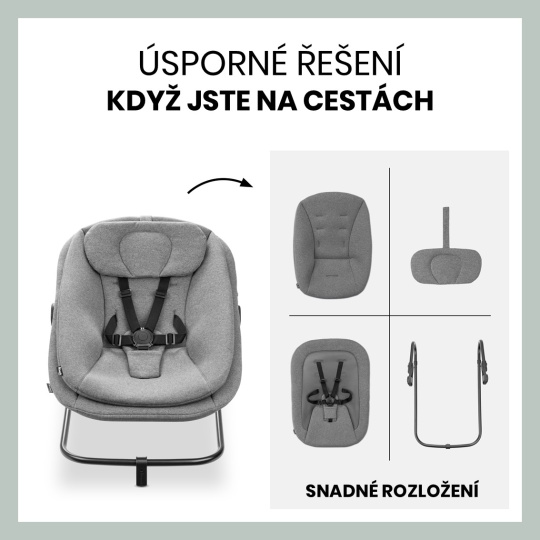 SNADNÉ ROZLOŽENÍ NA CESTU // Chcete si své křesílko vzít s sebou? Není problém. Křesílko lze jednoduše rozložit – po odejmutí horní části můžete křesílko složit do kompaktních rozměrů – ideální k babičce či na dovolenou.