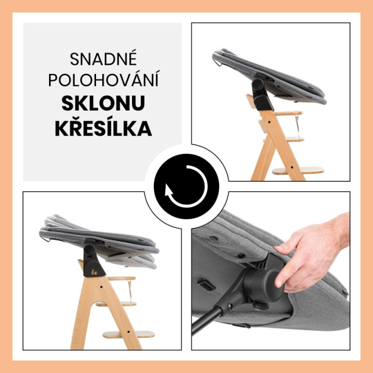 KŘESÍLKO – HOUPACÍ LEHÁTKO A NOVOROZENECKÉ SEDÁTKO – OD PRVNÍHO DNE // Potřebujete mít své děťátko stále u sebe? Díky přidanému adaptéru můžete křesílko snadno nasadit na konstrukci vaší dřevěné židličky hauck Alpha+ nebo Beta+ jako novorozenecké sedátko.