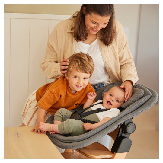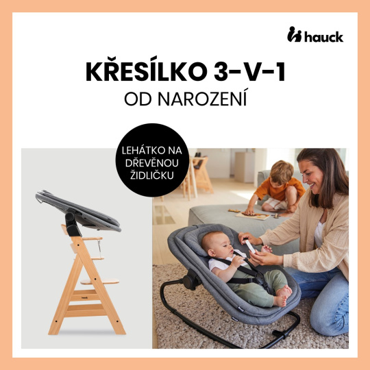 Chcete mít své děťátko neustále u sebe? Křesílko BOUNCER 3v1 je dodáváno spolu s adaptérem, který jej umožňuje nasadit na konstrukci vaší dřevěné židličky hauck Alpha+ nebo Beta+. Díky tomu můžete svou židličku používat již od narození a vaše děťátko může „sedět“ s vámi u stolu.