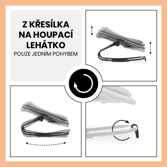 Z křesílka na houpací lehátko jedním pohybem - Jednoduchým pohybem změníte pohyb křesílka z „hopsacího“ na houpací. Nebo jej jednoduše nasadíte na dřevěnou židličku.