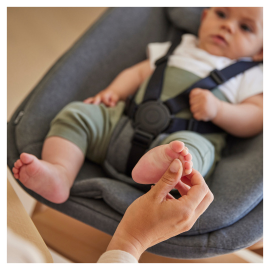 Sklon křesílka snadno nastavíte dle potřeb děťátka, od polohy vleže až do polohy napůl vzpřímené. Podle toho, zda je vaše maličké unavené nebo si chce hrát.