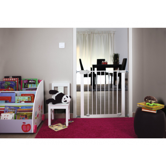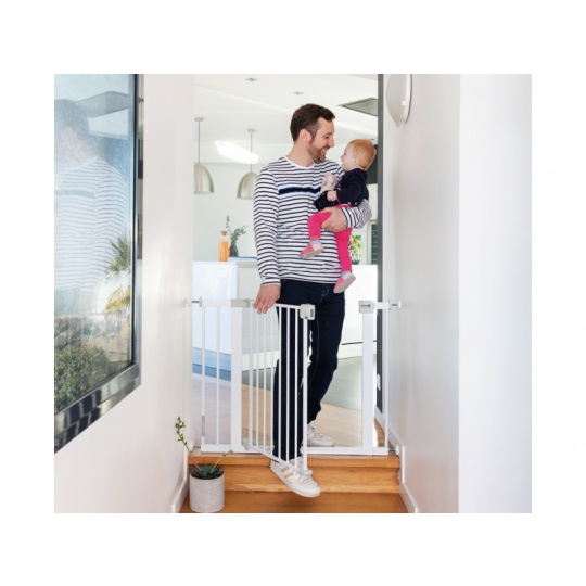 Safety 1st Auto Close je kovová zábrana s automatickým zavíráním, kterou je možné otevírat oběma směry. Dvojitý zajišťovací mechanismus zvyšuje bezpečnost. Díky vizuálnímu indikátoru Secure Tech® budete mít jistotu, že je zábrana správně zavřena. Jednoduchá instalace bez vrtání. Zábrana je vhodná do dveří či prostoru mezi stěnami o rozměrech 73 cm až 80 cm a lze ji rozšířit pomocí samostatně dostupných prodloužení až na 136 cm. Rám ve tvaru U zajišťuje pevné ukotvení Jednoduchá instalace bez vrtání Instalaci umožňují 4 tlakové šrouby Pohodlné otvírání jednou rukou Automatické zavírání Mimořádně široký průchod Indikátor Secure Tech® ukazuje, zda je zábrana bezpečně zajištěna Možnost nastavení otvírání jedním nebo oběma směry Dvojitý zajišťovací mechanismus zavírání zvyšuje bezpečnost Materiál: kov Pro otvory 73 – 80 cm Výška zábrany 73 cm Možnost dokoupení rozšíření zábrany o 7 cm, 14 cm, 28 cm Se samostatně prodávaným prodloužením je možné zábranu používat do otvorů šíře až 136 cm