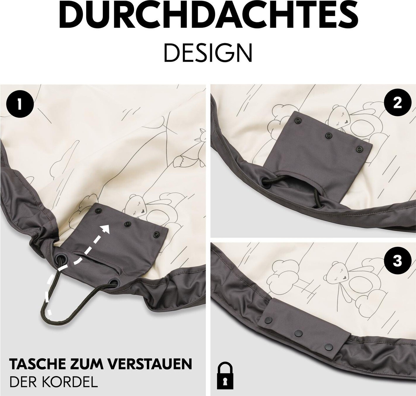 vše potřebné pouhým pohybem zápěstíJedním zatažením za pevnou šňůrku se z hrací podložky stane praktická a lehká přepravní taška na hračky všeho druhu.