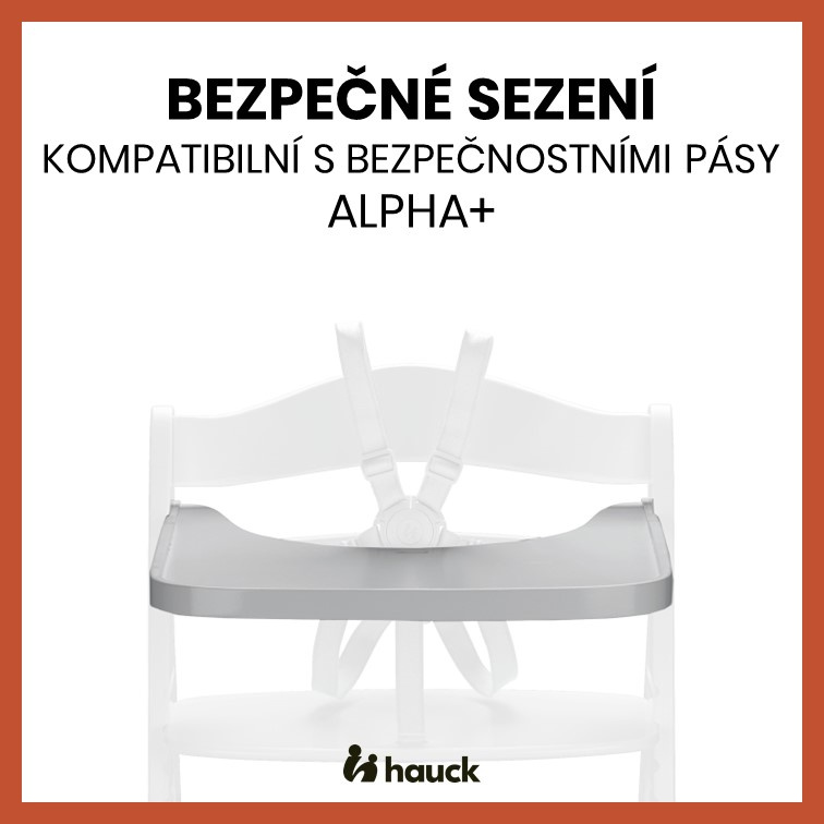 BEZPEČNÉ SEZENÍ S PULTÍKEM A BEZPEČNOSTNÍMI PÁSY // Díky kompatibilitě pultíku s pětibodovými bezpečnostními pásy a bezpečnostním popruhem Alpha je vaše děťátko dobře zabezpečeno, i když máte doma malého neposedu.