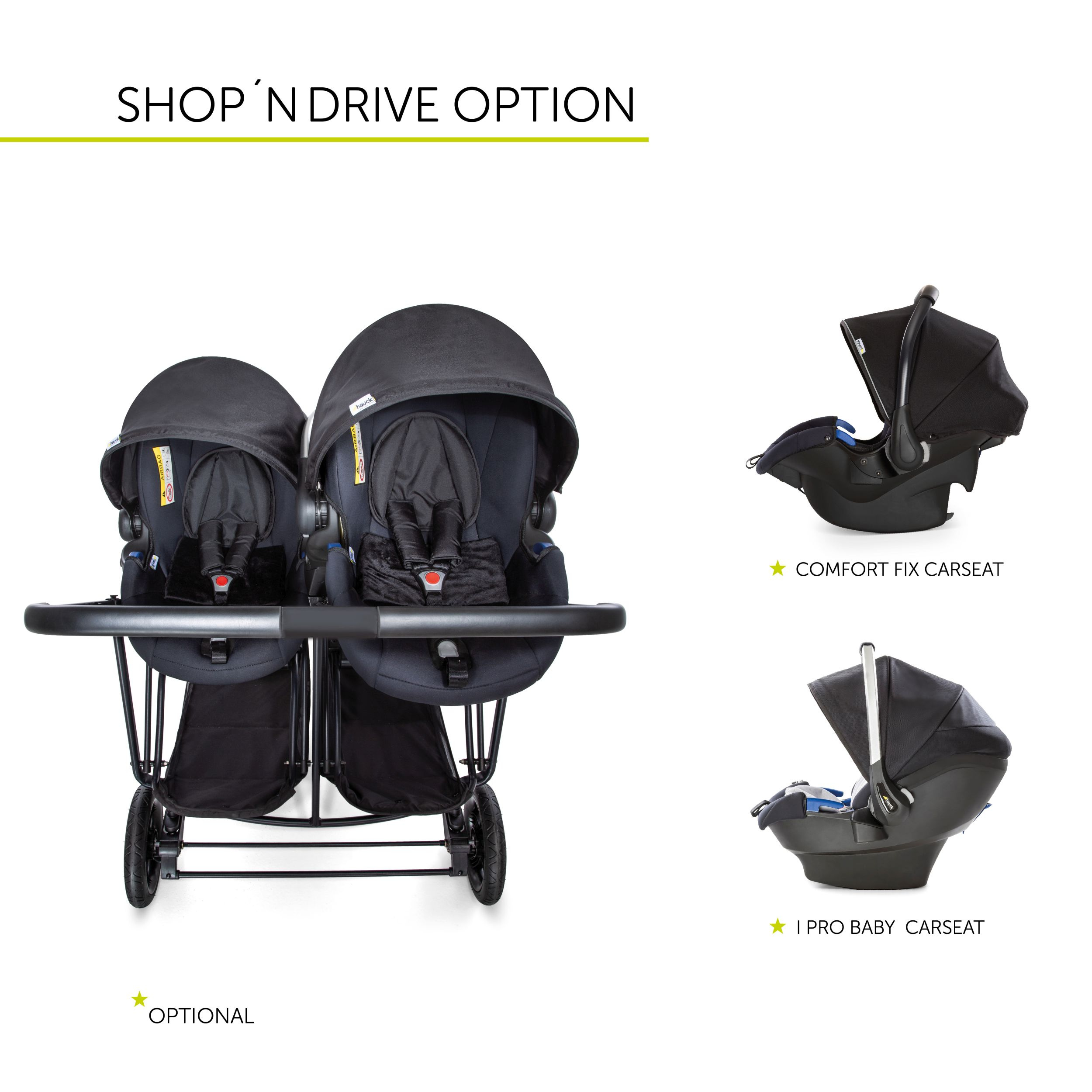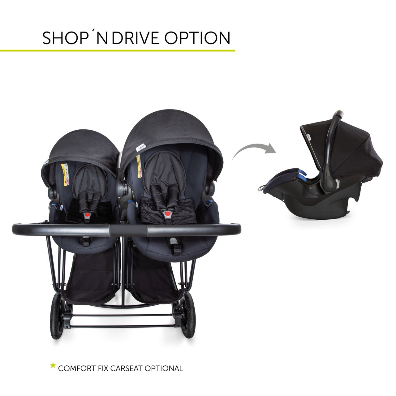 Sourozenecký kočárek včetně adaptérů na dvě autosedačky