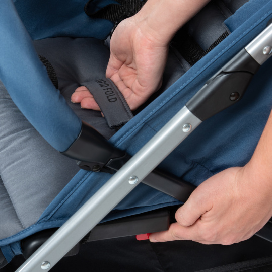 Složení by nemohlo být snadnější ani rychlejší. Rapid 4 složíte jednou rukou za jednu sekundu. Poutko na skládání je současně praktickou rukojetí za níž lze pohodlně kočárek přenášet. Takže vždy budete mít druhou ruku volnou pro vaše miminko, druhé dítě, či na něco jiného.