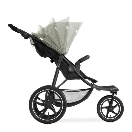 Robustní terénní kočárek // Vyrazte ven s tímto terénním fešákem za rodinným dobrodružstvím. Extra velká nafukovací kola zaručí jízdu s minimem otřesů. Kočárek díky otočnému kolu mistrovsky zdolá úzké zatáčky.