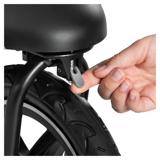 Abyste strávili Váš den komfortně, můžete posouvat polohu rukojeti o 30 cm a nastavit ji tak přiměřeně k Vaší výšce. Bezpečí Vaší ratolesti zajistí 5-bodový pás, brzda a přední madlo, které se při nastupování jednoduše vyklopí do strany.