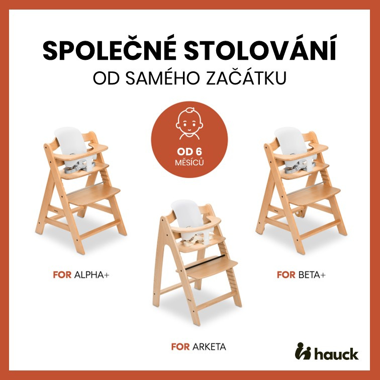 Perfektní doplněk k dřevěné dětské židličce Hauck: Alpha+, Beta+ nebo Arketa.