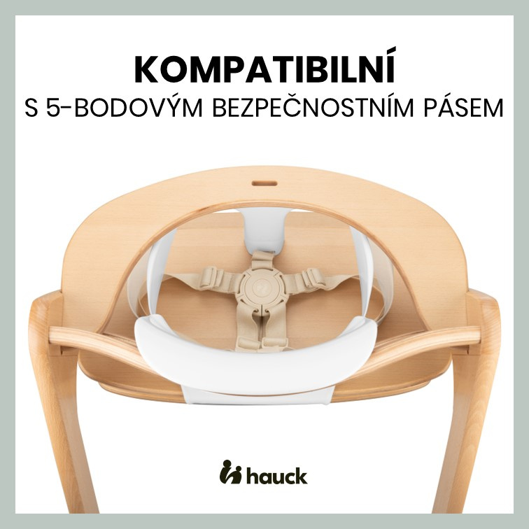KOMPATIBILNÍ S PĚTIBODOVÝMI BEZPEČNOSTNÍMI PÁSY // Všechny dřevěné dětské židličky hauck jsou vybaveny 5bodovým bezpečnostním pásem, který je kompatibilní i se sedátkem. Díky čemuž bude dítě dobře zabezpečeno v každém věku.