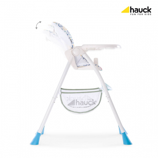 Díky velkému tácu lze dětskou vysokou židličku používat samostatně a po jídle ji snadno a rychle složit. Stačí jeden stisk bočních tlačítek. Kompaktní vysoká židlička se tak vejde do každého výklenku a ani při přepravě nezabere moc místa.