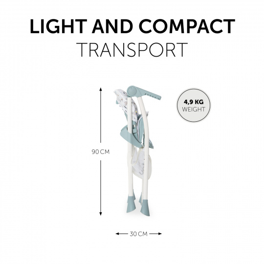 Po jídle se tato mimořádně lehká a kompaktní dětská jídelní židle snadno složí, a to pomocí obou postranních tlačítek. Židličku tak hravě uskladníte i v té nejmenší komůrce.
