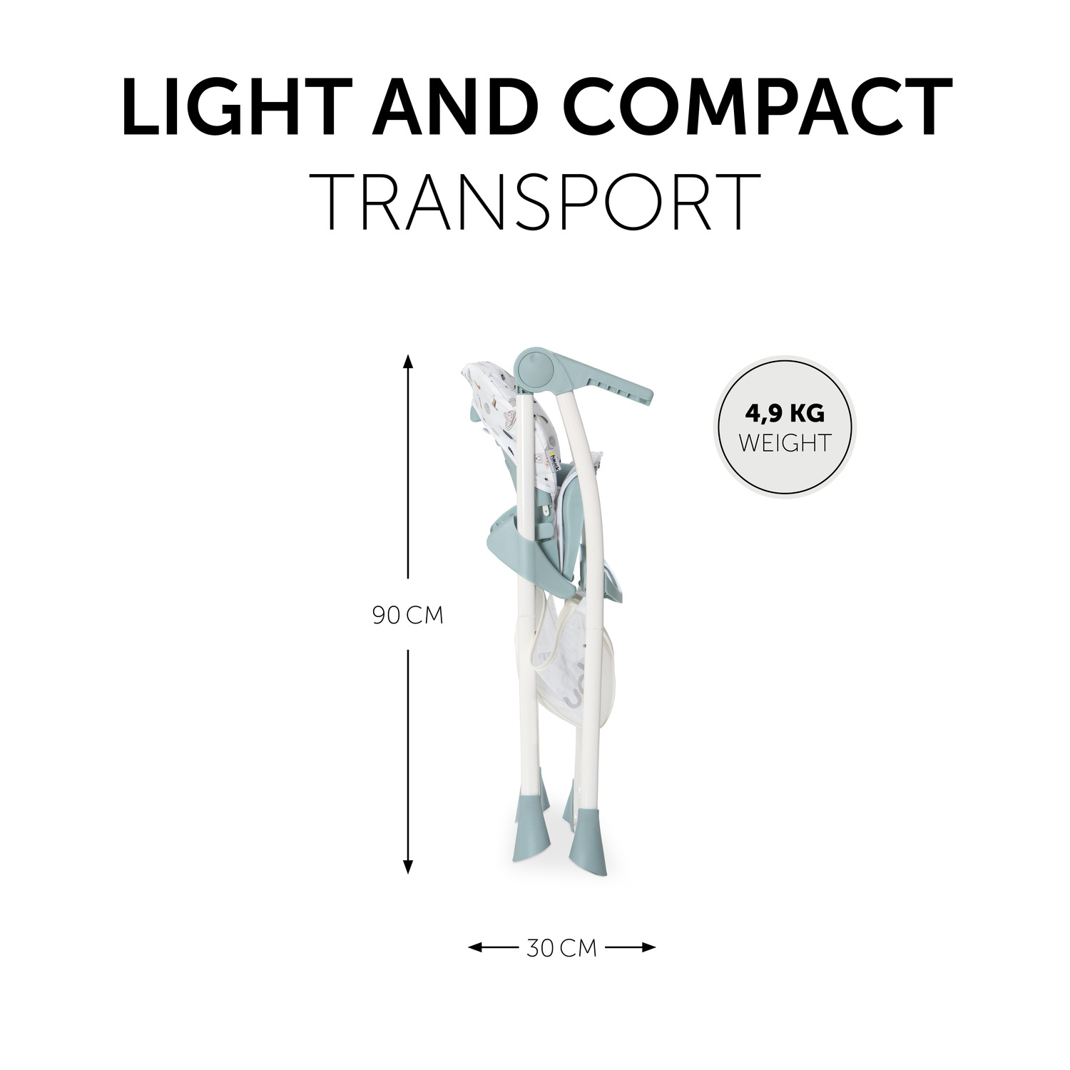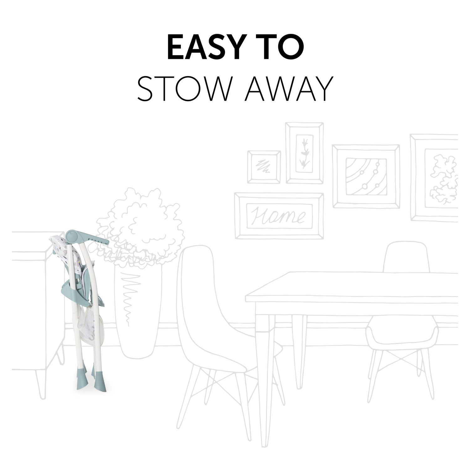 Po jídle se tato mimořádně lehká a kompaktní dětská jídelní židle snadno složí, a to pomocí obou postranních tlačítek. Židličku tak hravě uskladníte i v té nejmenší komůrce.