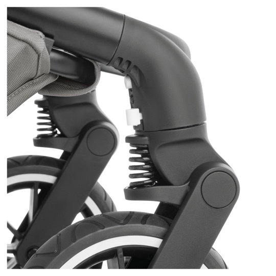Díky gumovým kolům do každého terénu jste vybaveni na všechny cesty. Odpružení 4 x 4 jemně pohupuje vaše děťátko, zatímco prodlužovací XL sluneční stříška (UV 50+) jej chrání za každého počasí a síťovaná okénka poskytují dostatek čerstvého vzduchu. Sedátko kočárku má výškově nastavitelné 5-bodové bezpečnostní pásy a dobře polstrovanou, extra vysokou opěrku zad. Opěrka nohou roste s vaším dítětem.