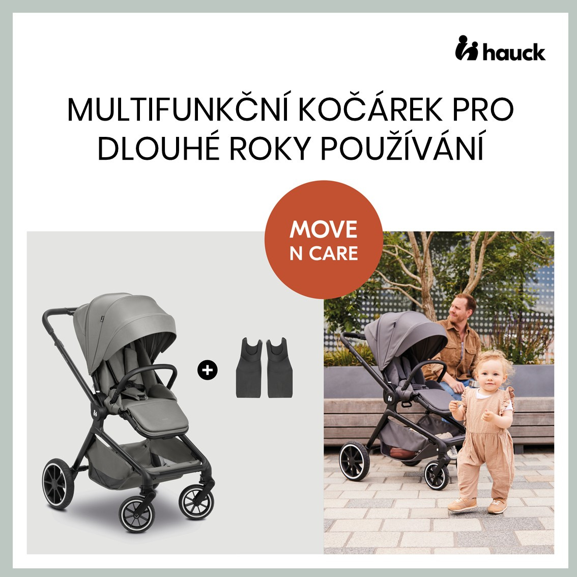 Kočárek hauck Move N Care je vhodný pro děti od narození až po batolecí věk (pro děti do 22 kg). Kočárek můžete používat buď se sportovním otočným sedátkem, díky kterému se vaše maličké může dívat na vás nebo prozkoumávat okolí, nebo s cestovním systémem s autosedačkou (univerzální adaptér je součástí balení).