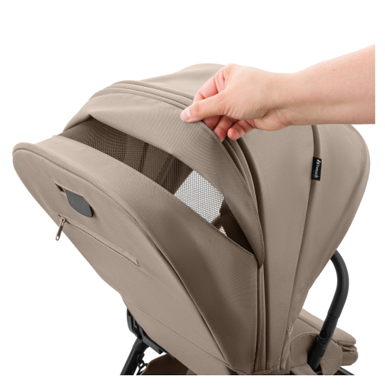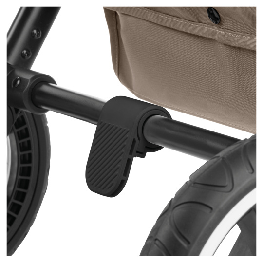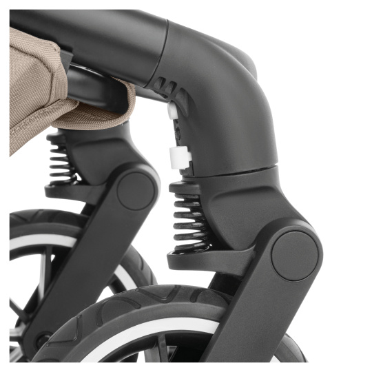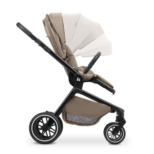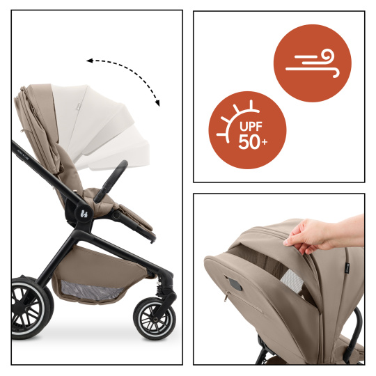 Díky gumovým kolům do každého terénu jste vybaveni na všechny cesty. Odpružení 4 x 4 jemně pohupuje vaše děťátko, zatímco prodlužovací XL sluneční stříška (UV 50+) jej chrání za každého počasí a síťovaná okénka poskytují dostatek čerstvého vzduchu. Sedátko kočárku má výškově nastavitelné 5-bodové bezpečnostní pásy a dobře polstrovanou, extra vysokou opěrku zad. Opěrka nohou roste s vaším dítětem.