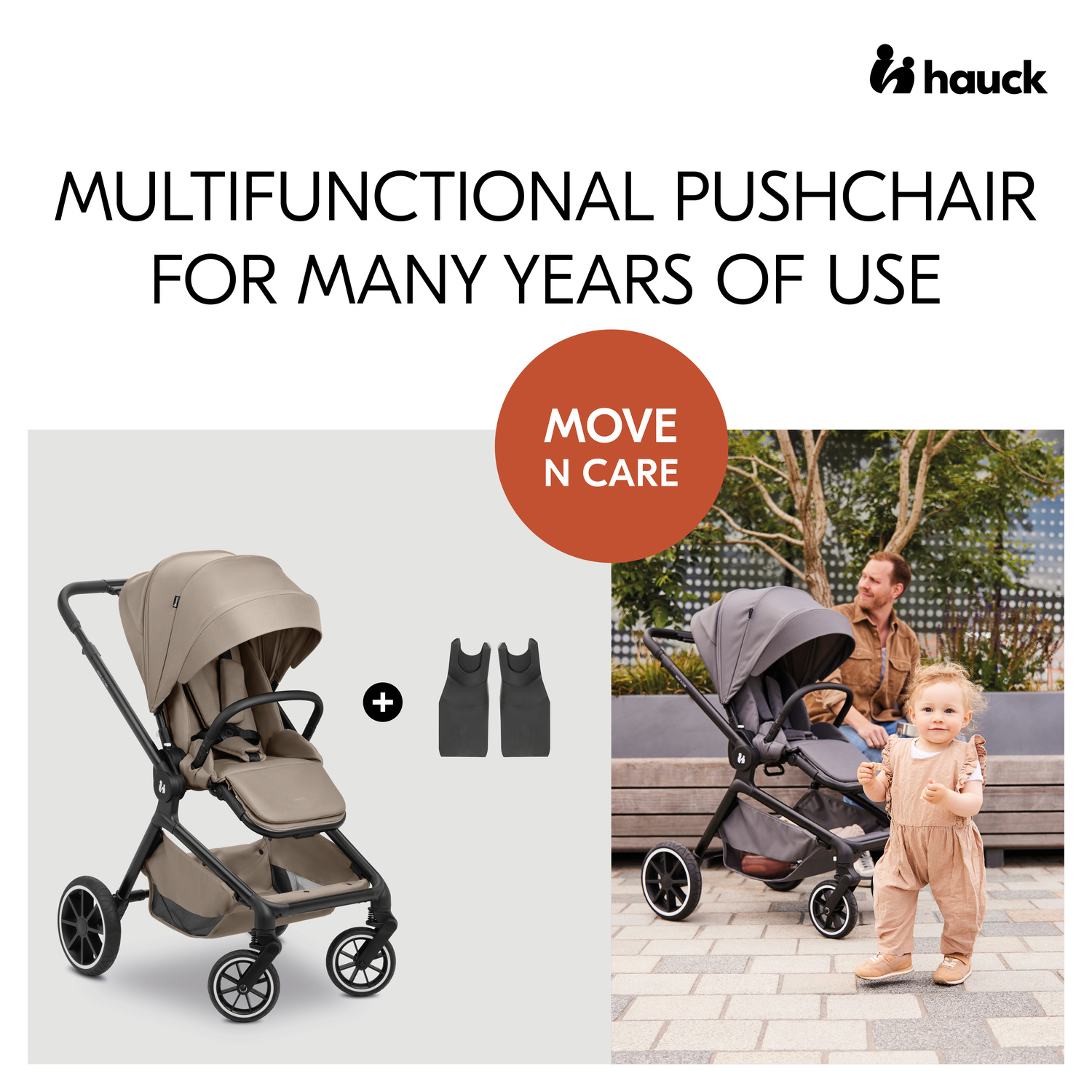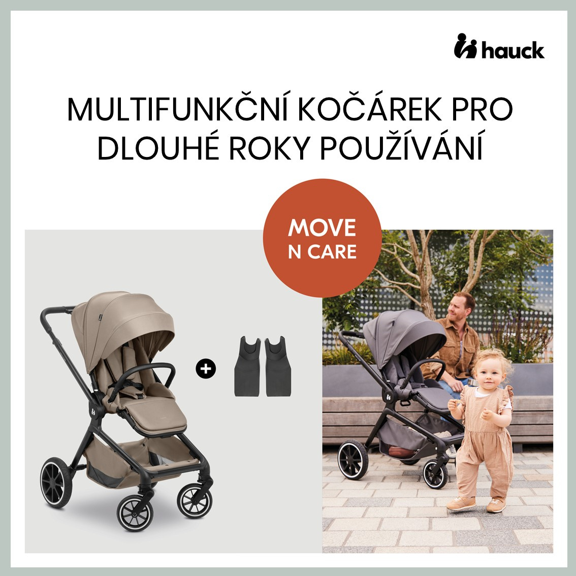 Kočárek hauck Move N Care je vhodný pro děti od narození až po batolecí věk (pro děti do 22 kg). Kočárek můžete používat buď se sportovním otočným sedátkem, díky kterému se vaše maličké může dívat na vás nebo prozkoumávat okolí, nebo s cestovním systémem s autosedačkou (univerzální adaptér je součástí balení).