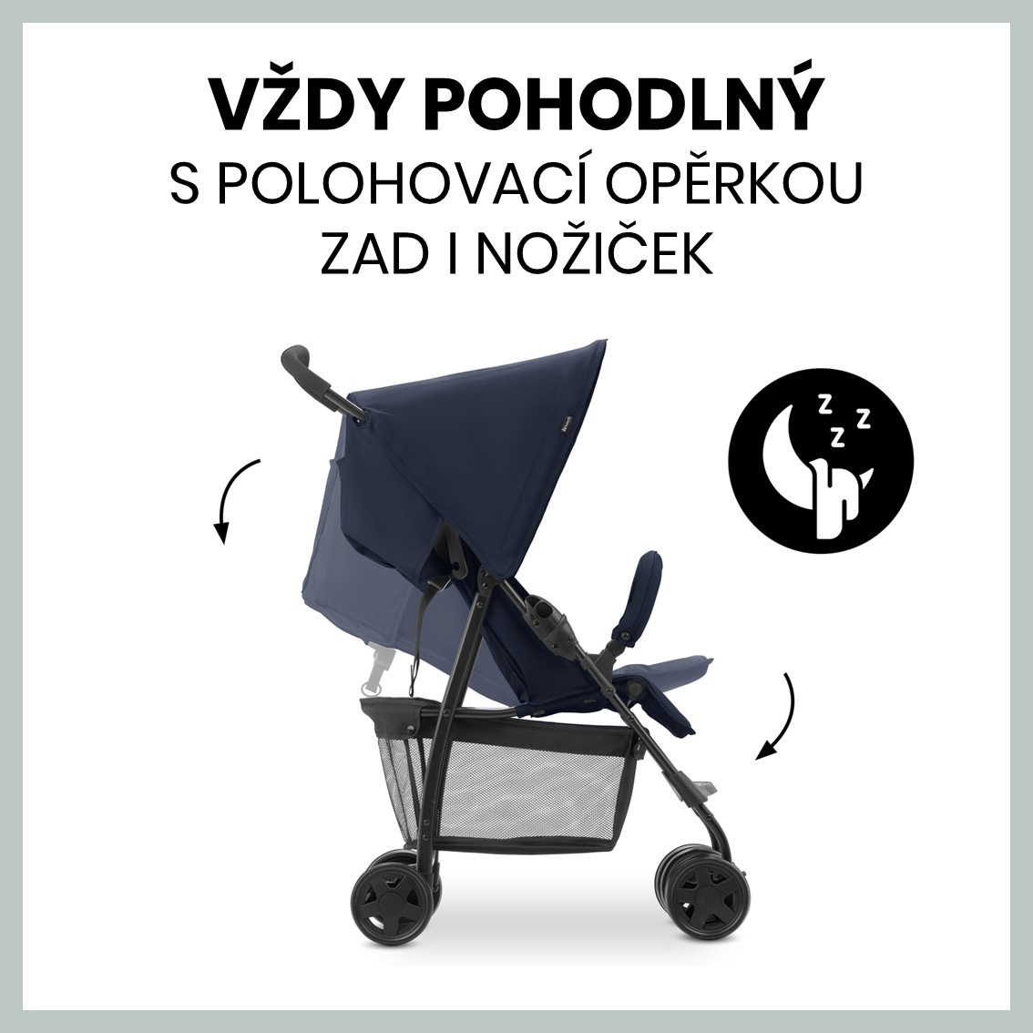 POHODLNÝ V KAŽDÉ SITUACI // Díky polohovací opěrce zad i nožiček se bude vaše maličké cítit pohodlně ať v sedě či v leže. Opěrku lze snadno polohovat jednou rukou. Prostorná stříška chrání vaše děťátko před sluncem a větrem.