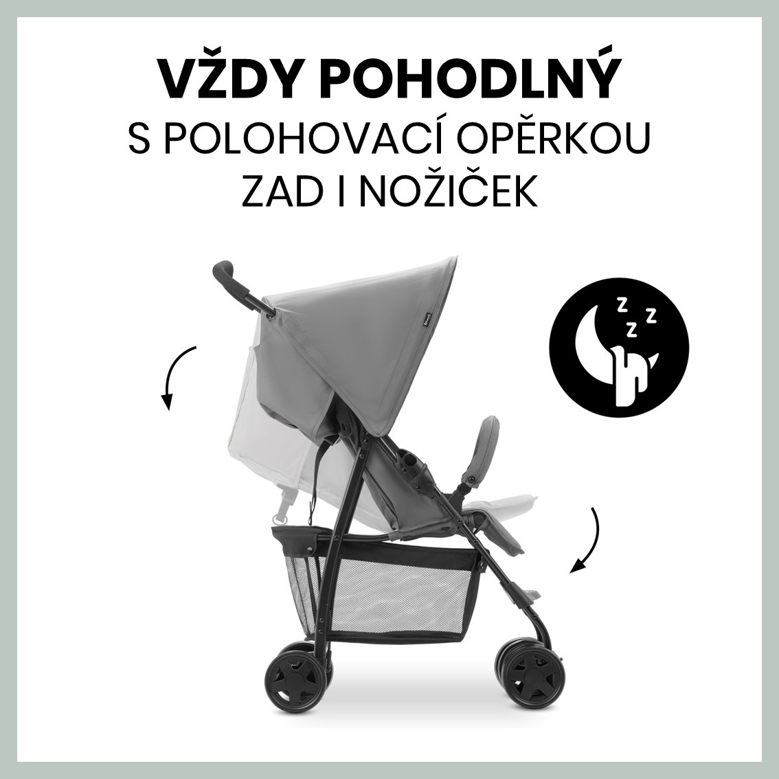 POHODLNÝ V KAŽDÉ SITUACI // Díky polohovací opěrce zad i nožiček se bude vaše maličké cítit pohodlně ať v sedě či v leže. Opěrku lze snadno polohovat jednou rukou. Prostorná stříška chrání vaše děťátko před sluncem a větrem.