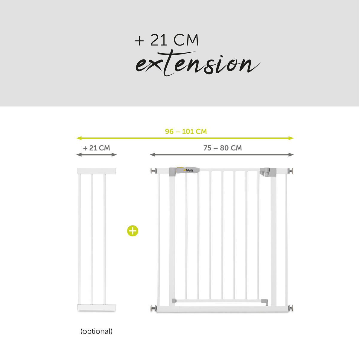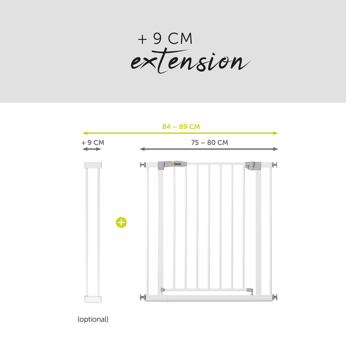Při použítí rozšíření o 9 cm nebo 21 cm (prodává se samostatně) lze zábranu rozšířit až na 122 cm. Ideální pro zajištění širokých průchodů.