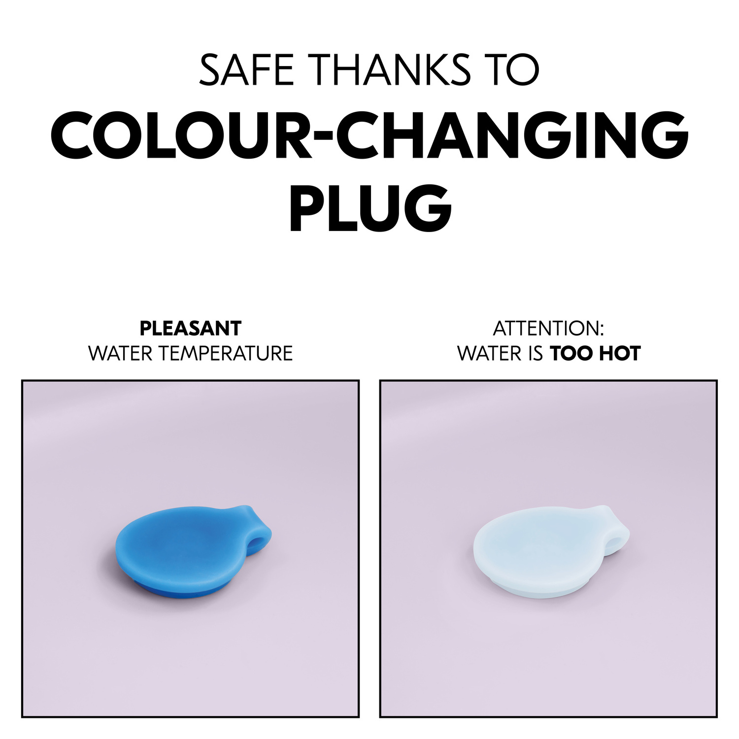 Bezpečná teplota. Výpustný ventil se barevně mění podle teploty vody.