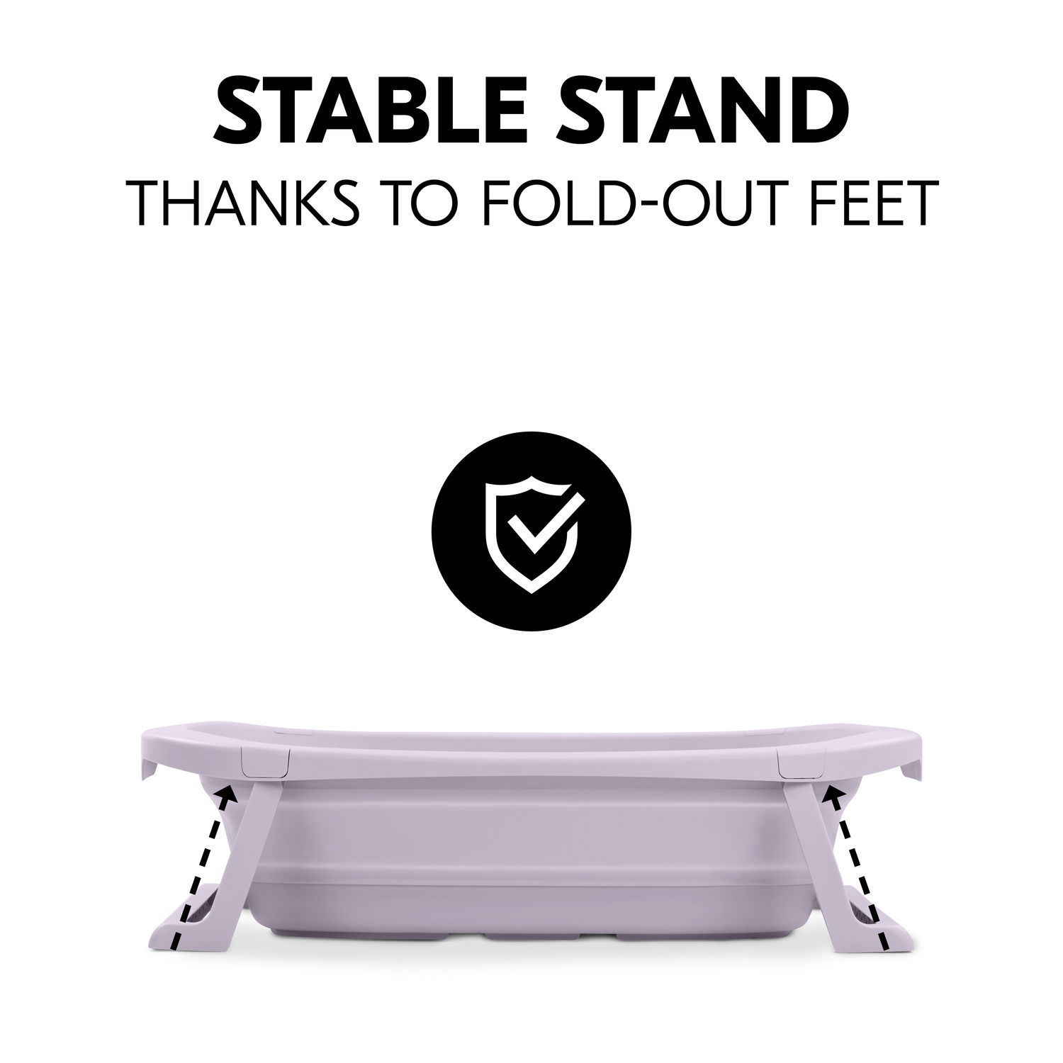 Díky výklopným nohám dětská vanička stojí pevně a spolehlivě na rovném a stabilním povrchu.